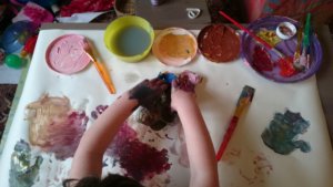 +1. Arra jöttem rá, akkor lesz élmény a közös festés, ha nem idegesítem magam halálra a “mindenfestékeslesz” dolgon. Mindent megtettem, hogy ne legyen az, de úgyis olyan lesz. Arra meg lélekben előre felkészülök. A festékfoltokért kárpótol a gyerekek lelkesedése!