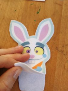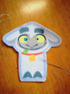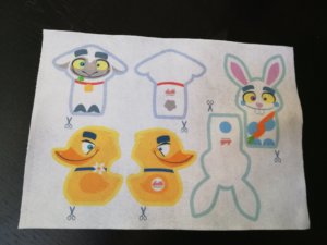 Az ujjbábokat csak ki kellett vágnom ebből a filclapból. A filcre valahogy rá van nyomtatva a minta. A döntésben az is segített, hogy Anikó öko-filcet használ az ujjbábokhoz.