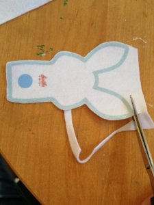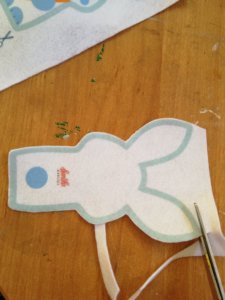 Féltem, hogy a nyuszi fülei szétcsúsznak, ezért a feje közepén kezdtem varrni, először az egyik, majd a másik irányba.