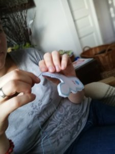 A weboldalon láttam,milyen szépen vannak megvarrva a bábok. Először gondolkoztam azon, hogy előveszem a varrógépet, aztán végül maradtam a jól bevált pelenkaöltérnél.